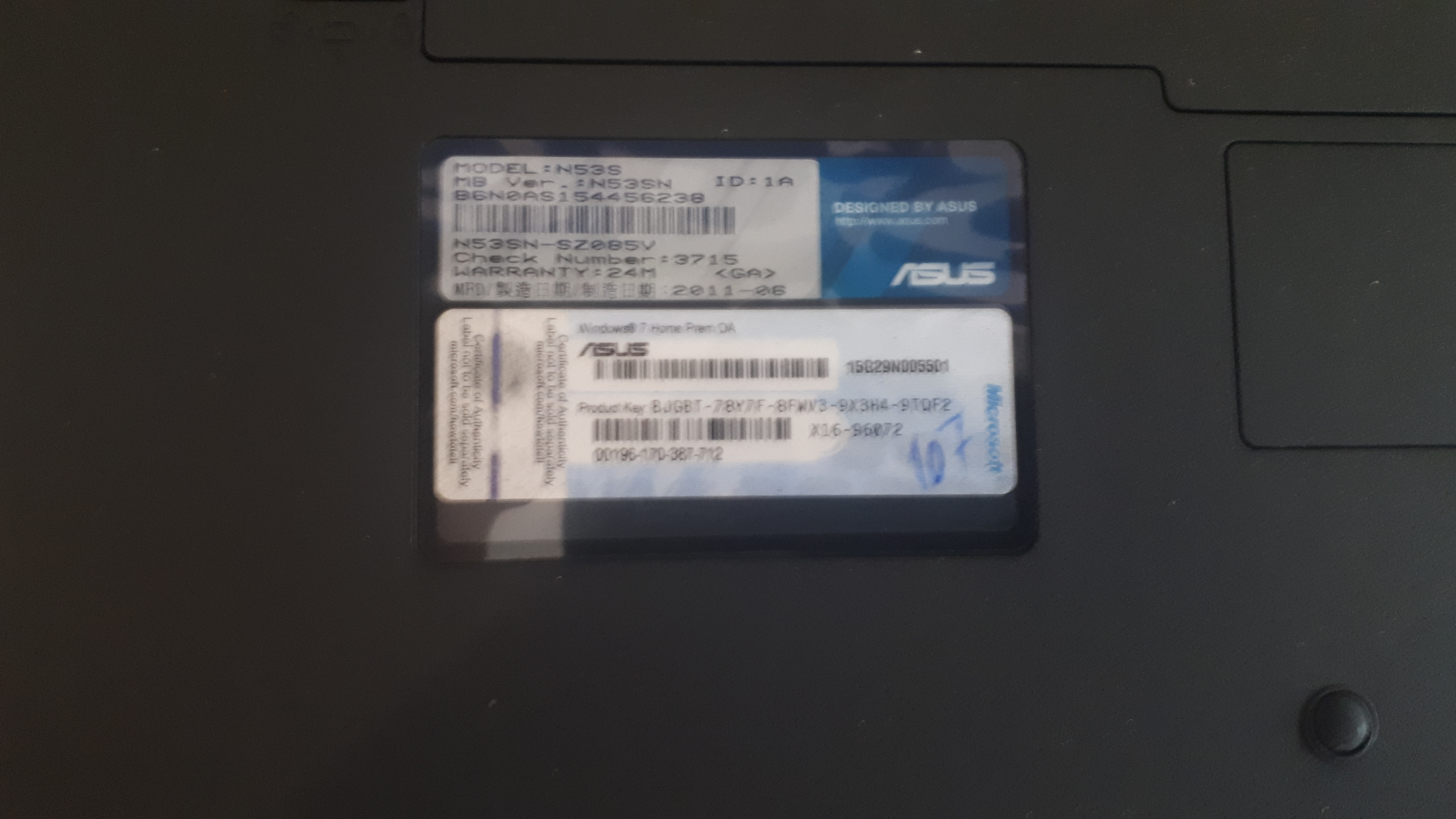 Asus N53S Corei7 Nvidia 2G 4GB 500GB 15.6