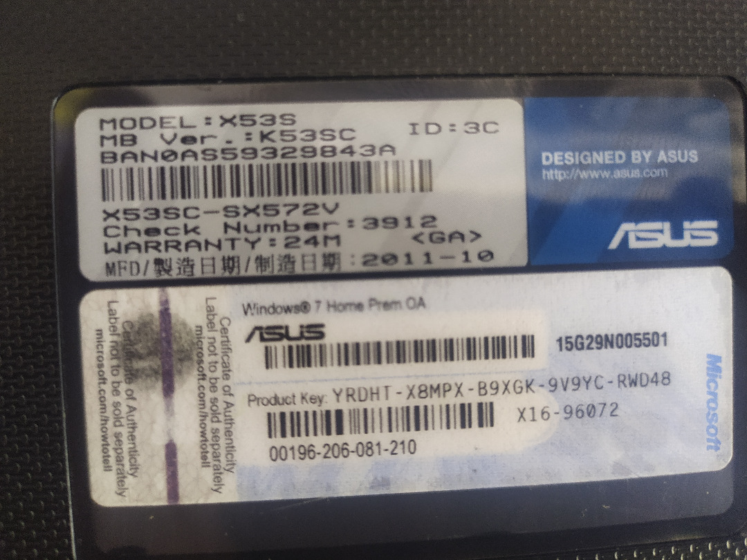 Asus X53S Notebook Intel Corei3 2,5Ghz 8GB 500GB USB 3.0 15.6