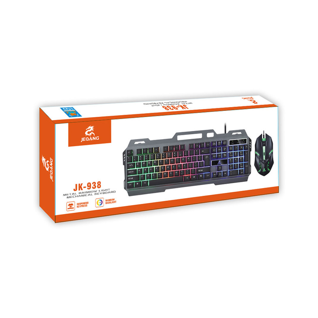 کیبورد و موس JK-938 مناسب برای بازی میباشد.کیبور دارای نورپردازی است و به صورت ثابت است.کیبورد سازگار با تمام سیستم عامل ها.طول عمر کلید های کیبورد بیش از 50 میلیون ضربه.موس قابلیت استفاده با هر دو دست را دارد.موس دارای سه کلید است. موس داری نورپردازی میباشد.دقت موس 800تاDPI 1600