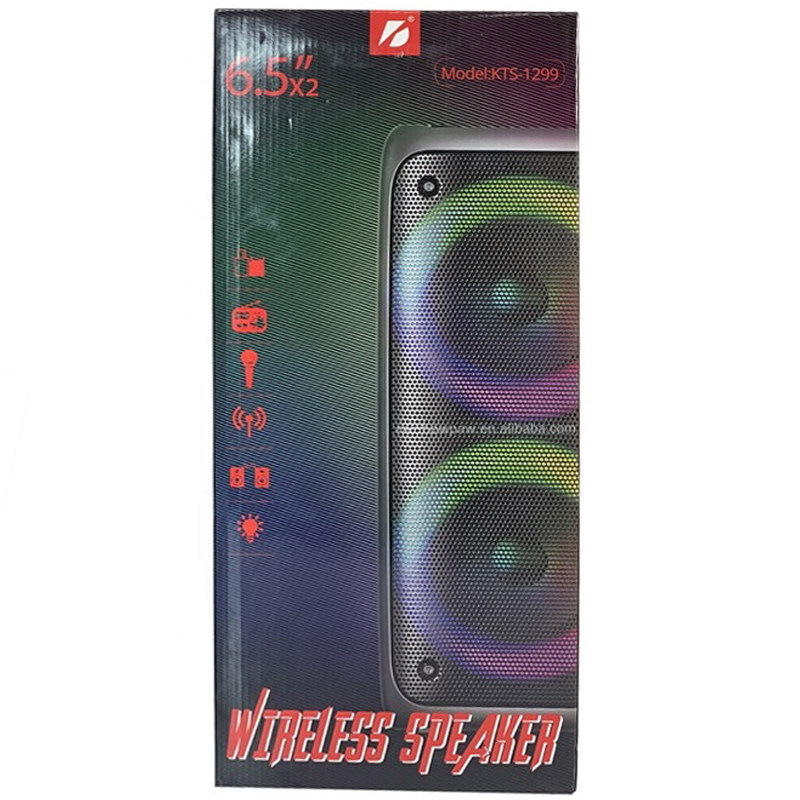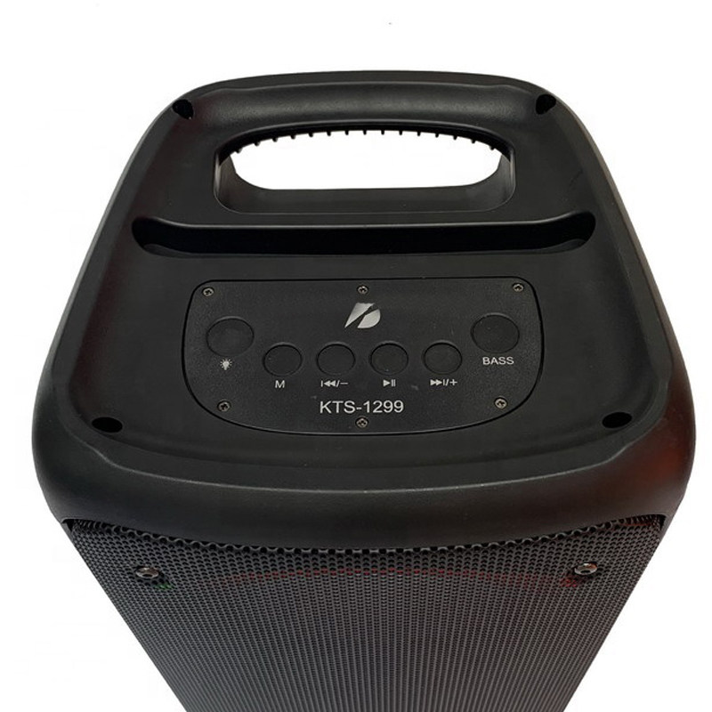 اسپیکر بلوتوث قابل حمل KTS با توان خروجی 40 وات و ظاهر شیک و زیبا میتواند انتخاب خوبی برای گوش دادن و لذت بردن از موزیک دلخواهتان باشد. این اسپیکر دارای دو باند 6.5 اینچی و دارای رقص نور RGB می باشد که هنگام پخش موزیک زیبایی چندانی به اسپیکر میدهد. پشتیبانی از کارت حافظه و فلش مموری ، بلوتوث ، ورودی AUX و قابلیت اتصال میکروفن از ویژگی های این اسپیکر قدرتمند می باشد .