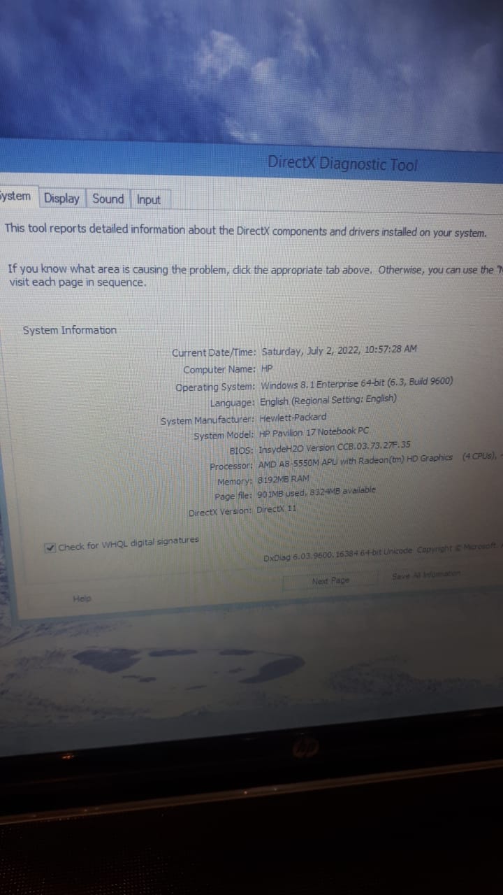 Hp Pavilion AMD A8 , Radeon Hp 8550 4G , Ram 8 Hard 600
