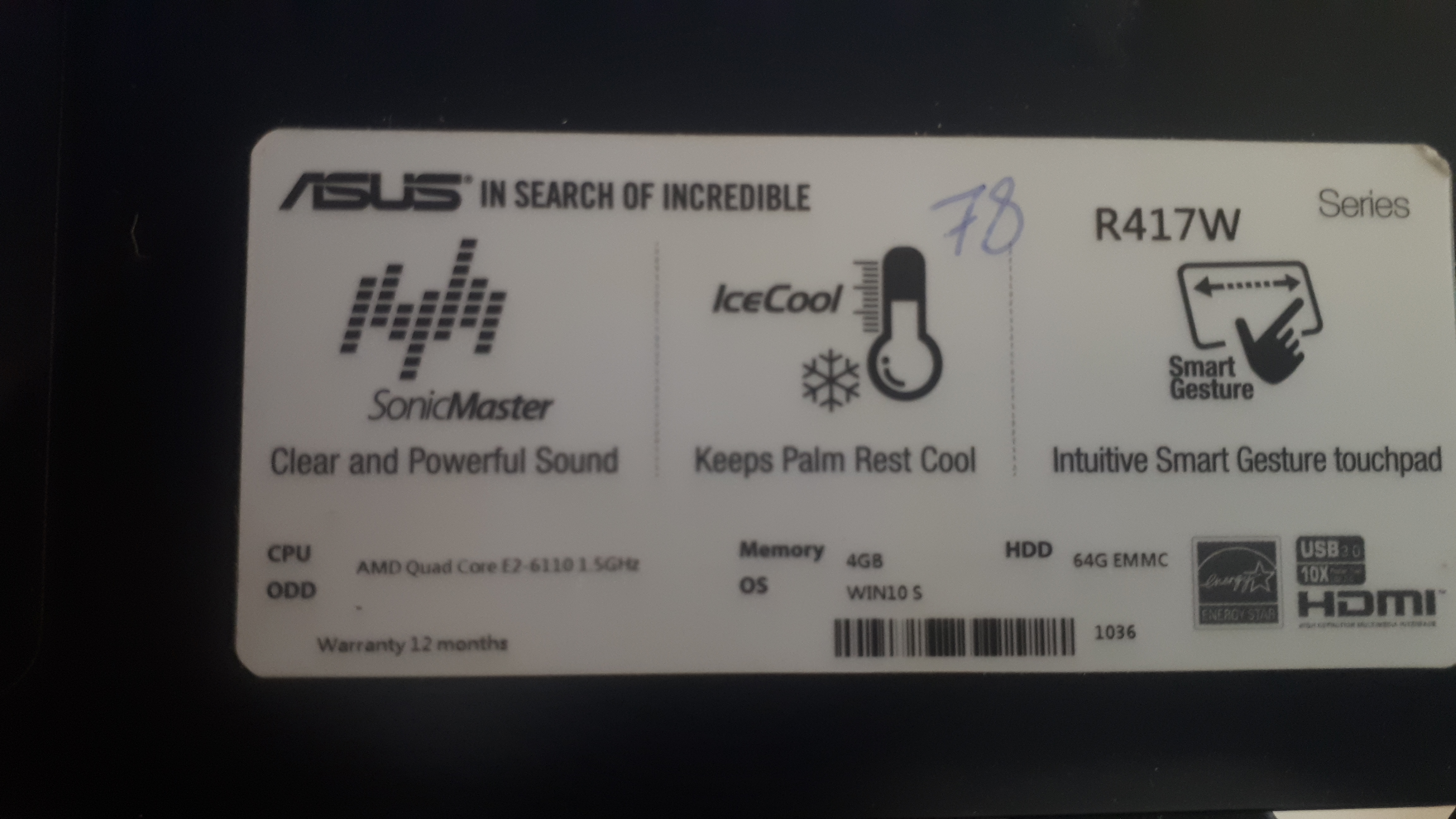 Asus R417W Amd Quad Core E2 2GB 500GB